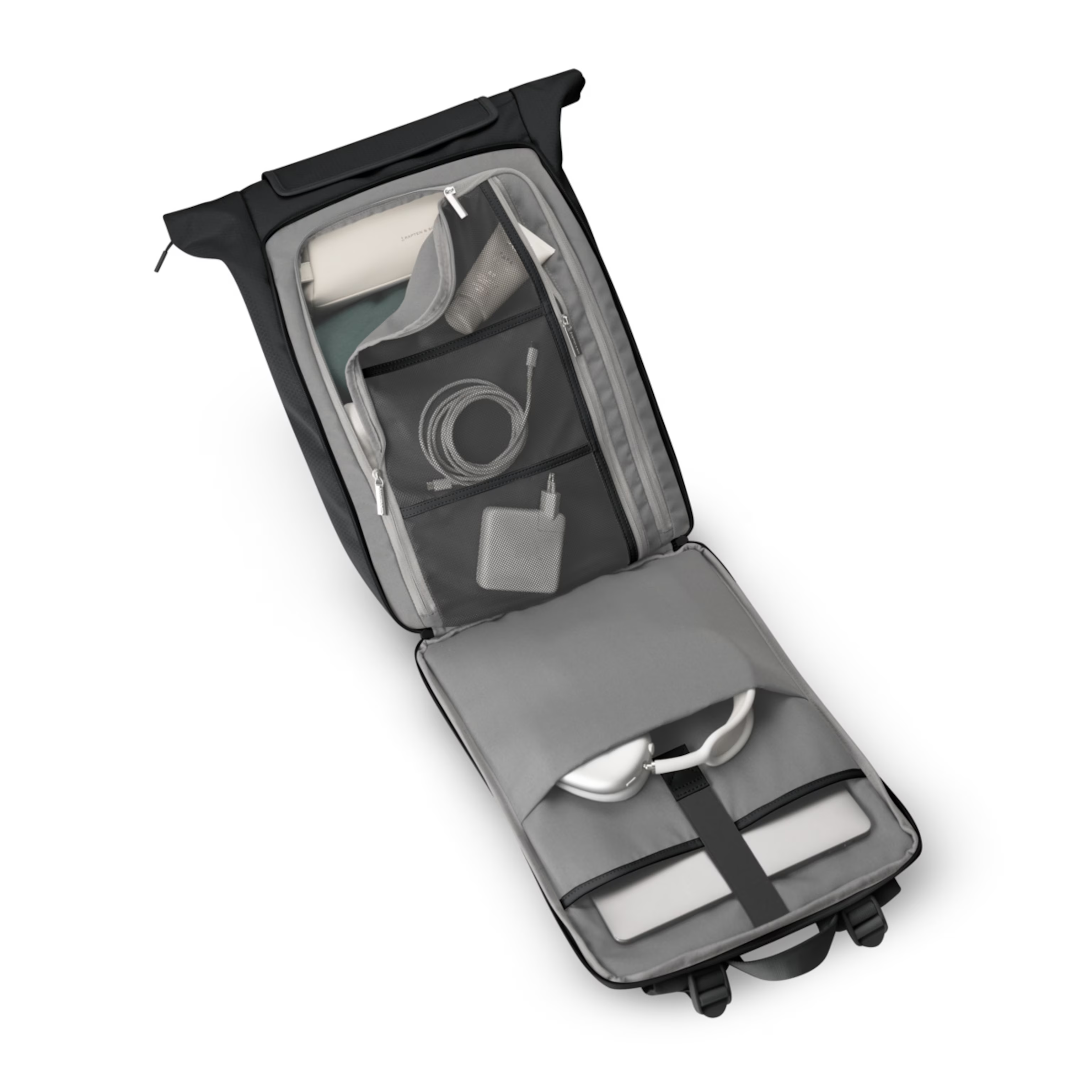 Il dispose d'une capacité de 28L en mode minimal, mais il peut être étendu à 35L en déroulant le sac. Cela permet de transporter plus d'affaires sans avoir à sacrifier la praticité.