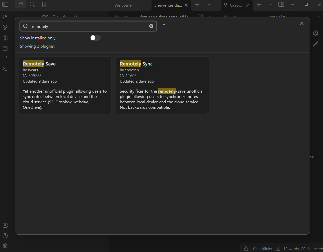 Étape 1 : Installation de Remotely Save sur Obsidian